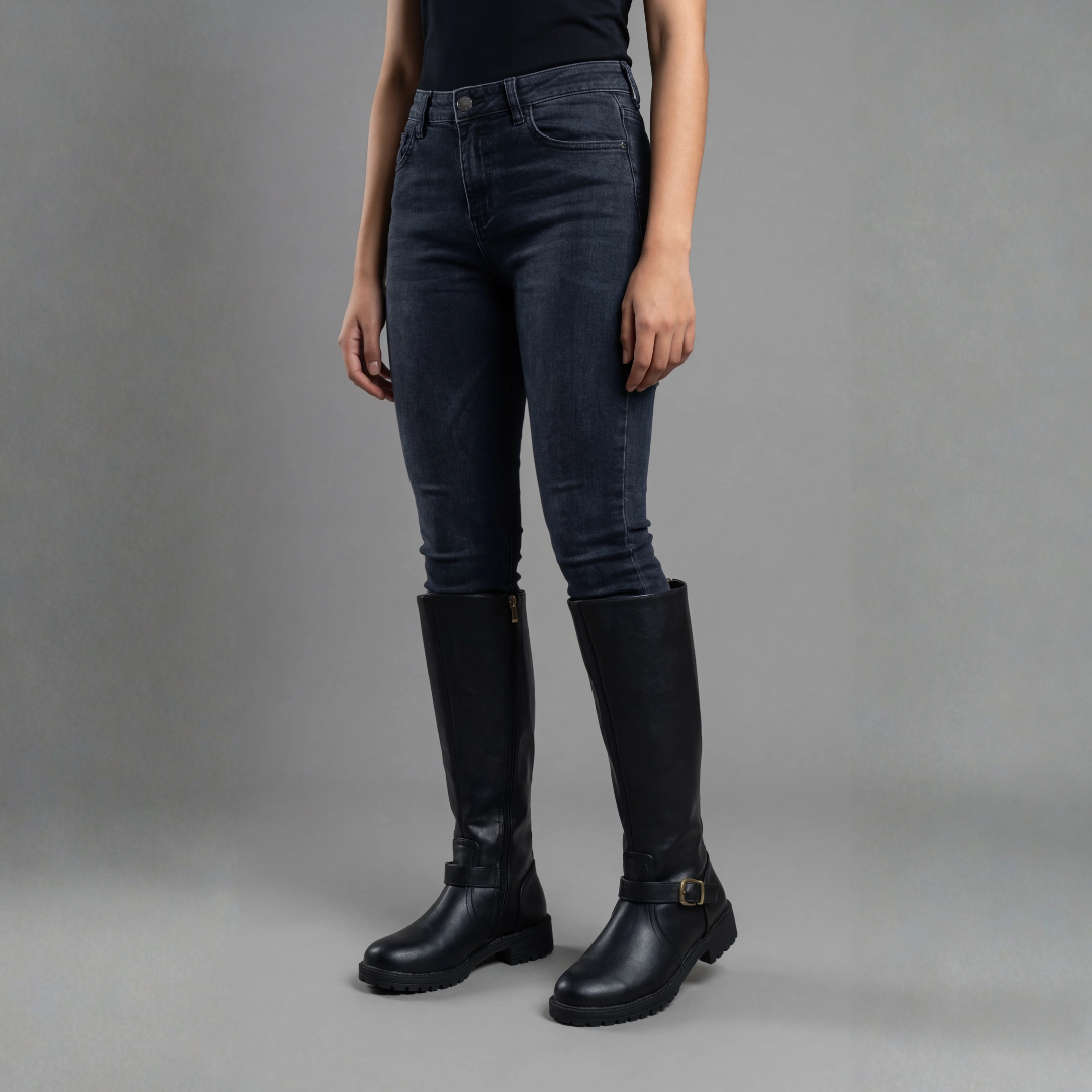 - Diseño: Bota de caña media con cierre funcional y detalles que estilizan la pierna.